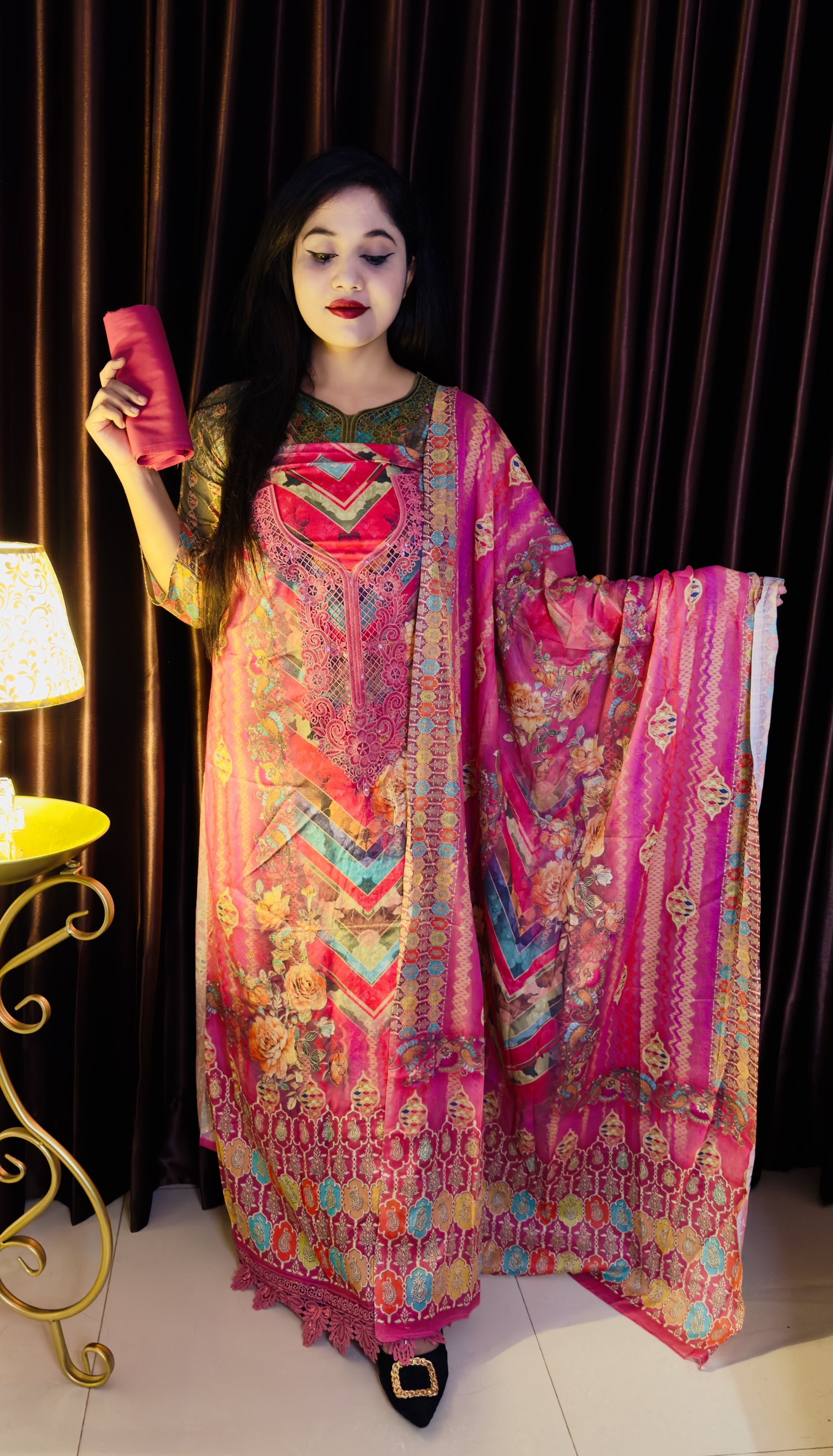 পুরো ড্রেসে রয়েছে ইউনিক ডিজিটাল প্রিন্ট ডিজাইন, যা রঙ ও প্যাটার্নে একেবারেই আলাদা।